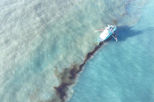 The massive oil spill was discovered six days ago in the Gulf of Mexico near a 67-mile pipeline system operated by Main Pass Oil Gathering Co. in the lower Bayou. Ocean vessels, like the one shown, have been skimming the oil for six days as authorities scrambled to find the source of the leak. Photo by Clean Gulf Associates/U.S. Coast Guard