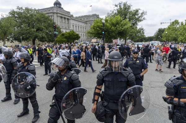 US Capitol Hill Police ready as protesters gather in front of the U.S. Supreme Court in Washington, DC on Friday, June 24, 2022. Photo by Tasos Katopodis/UPI | License Photo