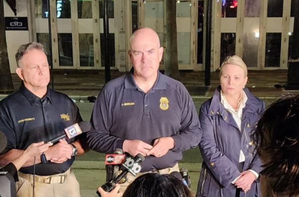 Tampa Police chief Lee Bercaw provides an update to a shooting that left two dead and 19 others injured early Sunday in the Ybor City district. Photo courtesy Tampa Police