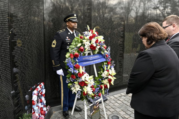Gold Star families participate in a National Vietnam War Veterans Day ceremony at the Vietnam Veterans Memorial on March 29, 2019, in Washington D.C. File photo by Leigh Vogel/UPI | License Photo