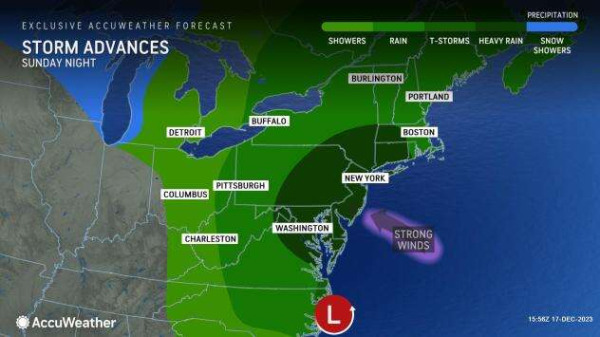 Behind the storm, cooler conditions and even wintry weather will spread across the interior Northeast from Monday to Tuesday. Temperatures across the Northeast are expected to linger near typical December values through the remainder of the week. Advertisement