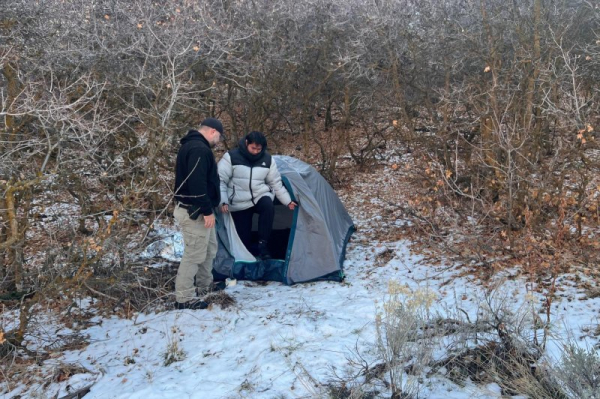Chinese national Kai Zhuang, 17, is rescued from a tent after being convinced to extort $80,000 from his family. Photo courtesy of Riverdale City, Utah/Facebook