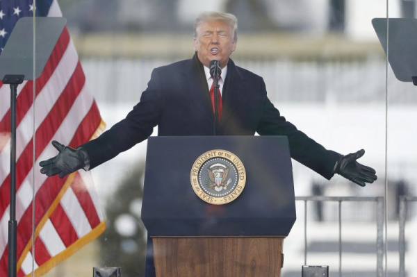1 of 3 | Former President Donald J. Trump delivers remarks to supporters in Washington, D.C., on Jan. 6, 2021, before the riots at the U.S. Capitol. On Tuesday, a federal judge dismissed part of a lawsuit, including a wrongful death claim against Trump, in the death of Capitol officer Brian Sicknick. Photo by Louis Lanzano/UPIFile pool photo by Shawn Thew/UPI | License Photo