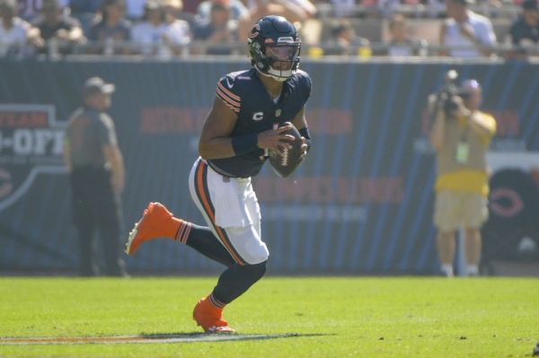 The Bears opened the game with a 6-play, 75-yard drive, ending with a 20-yard touchdown toss from Fields to Moore.