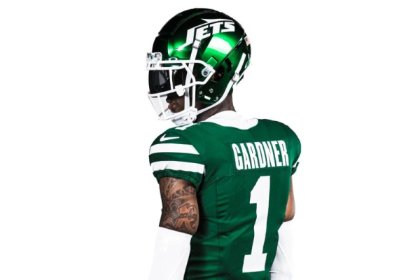 1 of 3 | New York Jets cornerback Sauce Gardner poses for a photo as part of a uniform reveal. Photo courtesy of the New York Jets