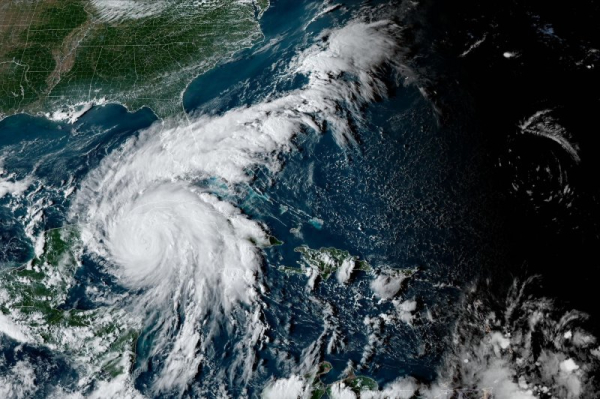 Hurricane Ian pictured at 5:29 PM EST on Monday, September 26, 2022, as it approached western Cuba, where it made landfall before moving over the southeastern Gulf of Mexico. Photo by NOAA/UPI | License Photo