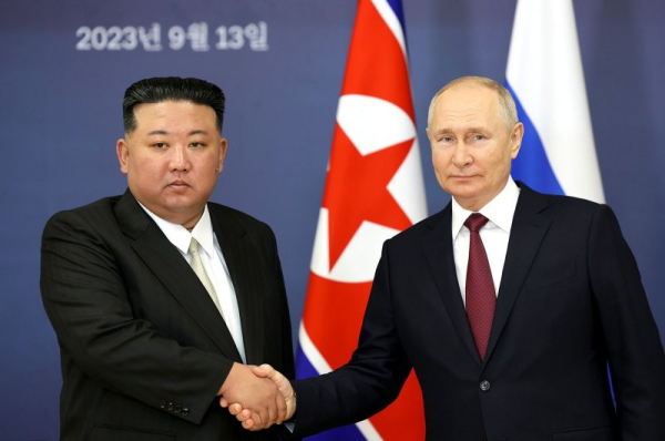 North Korean Leader Kim Jong-un (L) meets with to Russian President Vladimir Putin (R) during the Russia – North Korea Summit on September 13, 2023. File Photo by Kremlin POOL/UPI | License Photo