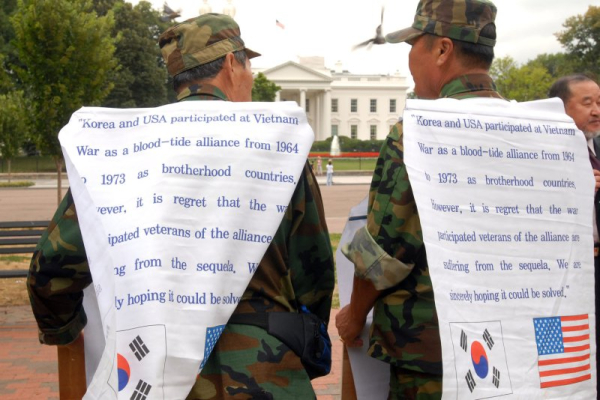 Members of the Korean Disabled Veteran’s Association for Agent Orange hold a vigil near the White House in August 2006. The VA is now proposing an expansion of eligibility for benefits for those exposed to the toxic chemical while serving in the U.S. military. File Photo by Roger L. Wollenberg/UPI | License Photo