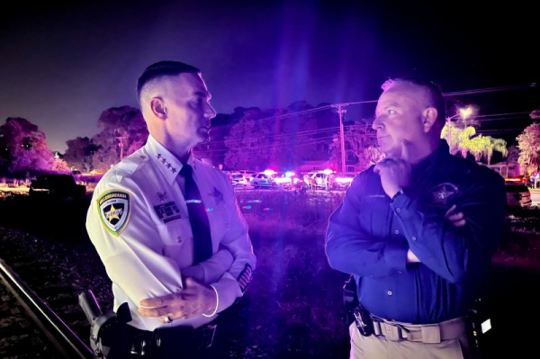 At least six people were killed Saturday night after a freight train crashed into an SUV sitting on the tracks at a railroad crossing near Tampa, Fla. Photo courtesy of Hillsborough County Sheriff’s Office
