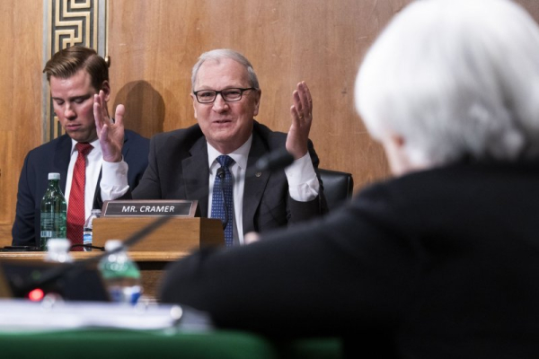 The son of Sen. Kevin Cramer, R-N.D. (pictured in 2022), was involved in a deadly crash that killed a deputy, according to the lawmaker and the N.D. Highway Patrol. File Pool Photo by Tom Williams/UPI | License Photo