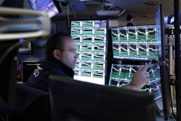 Traders work on the floor of the NYSE in April 2022. On Friday, the S&P 500 closed above 5,000 for the first time ever. File Photo by John Angelillo/UPI | License Photo