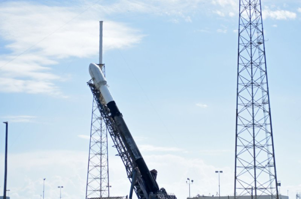 The SpaceX Falcon 9 rocket is raised to a vertical position as it is prepared to launch the Galaxy 37 communications satellite for Intelsat from Launch Complex 40 at the Cape Canaveral Space Force Station, Florida on Wednesday, August 2, 2023. Photo by Joe Marino/UPI | License Photo