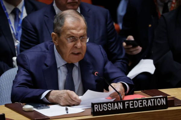 The United States is “directly at war” with Moscow, Russian Foreign Minister Sergey Lavrov said Saturday, after the close of the high-level week of the 78th General Assembly of the United Nations in New York.