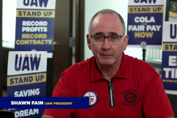 Shawn Fain, the president of the powerful United Auto Workers union, indicated Wednesday that the group is ready to conduct a rolling strike at all automakers in Detroit. Photo courtesy of UAW/Facebook