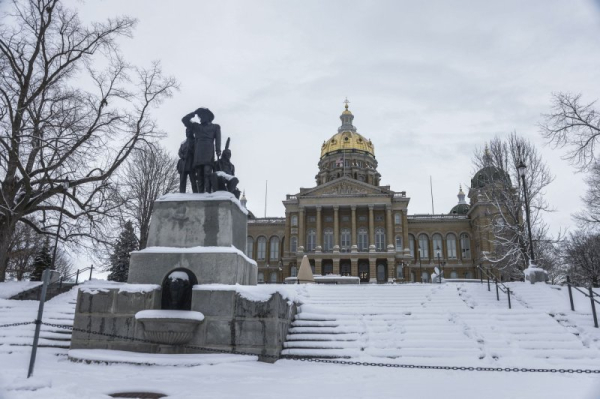 1 of 3 | The Iowa State Capitol is surrounded with snow after Winter Storm Finn hit the Midwest US causing slippery roads and extensive power outages, in Des Moines, Iowa, on Wednesday, January 10, 2024. According to reports over 160 million people were under weather alerts as the storm moves east. Photo by Tannen Maury/UPI | License Photo
